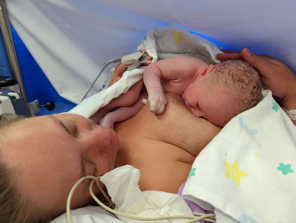 I couldn’t believe that my baby was here. We cuddled and I smothered him in kisses. Soon he started rooting for my breast and I asked if I could feed him. The midwives in the room rushed over and helped him latch onto my breast and he had his first feed right there on the operating table while they were still stitching me up.