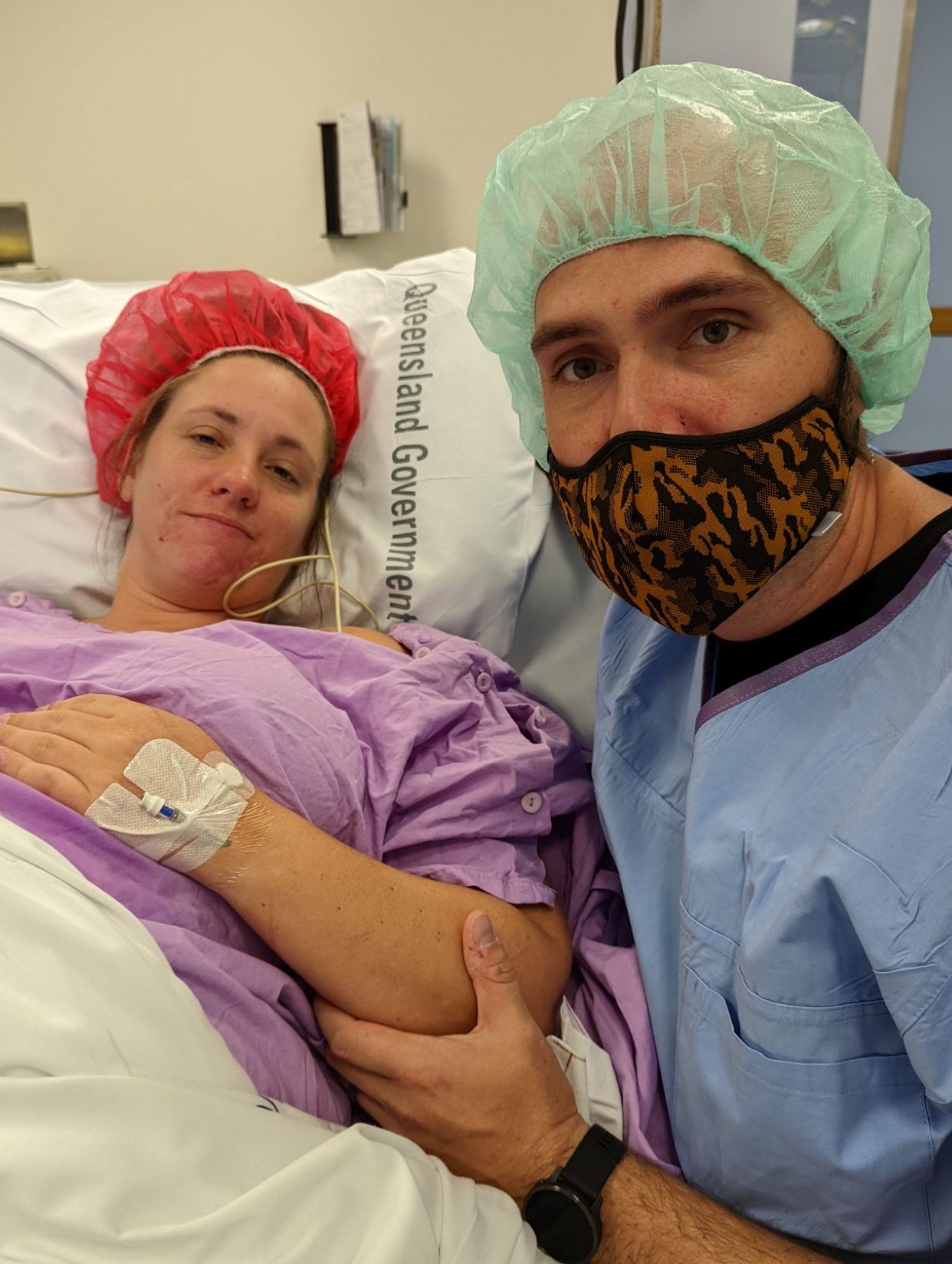 The doctor came in to do another vaginal exam. I hadn’t progressed at all. I didn’t realise at the time, but the OB pulled Tony aside and told him that if we didn’t proceed with getting baby out soon, we could be looking at some pretty bad outcomes. Tony was really worried and had begun crying, but I was too out of it to notice. We were given some privacy to discuss what we wanted to do, and I decided that it was time to have a c-section. I was happy that it was my own decision and that I didn’t feel pressured or scared into it. I was so grateful that I at least had the opportunity to try to have a natural birth, even if that’s not how it was going to end.